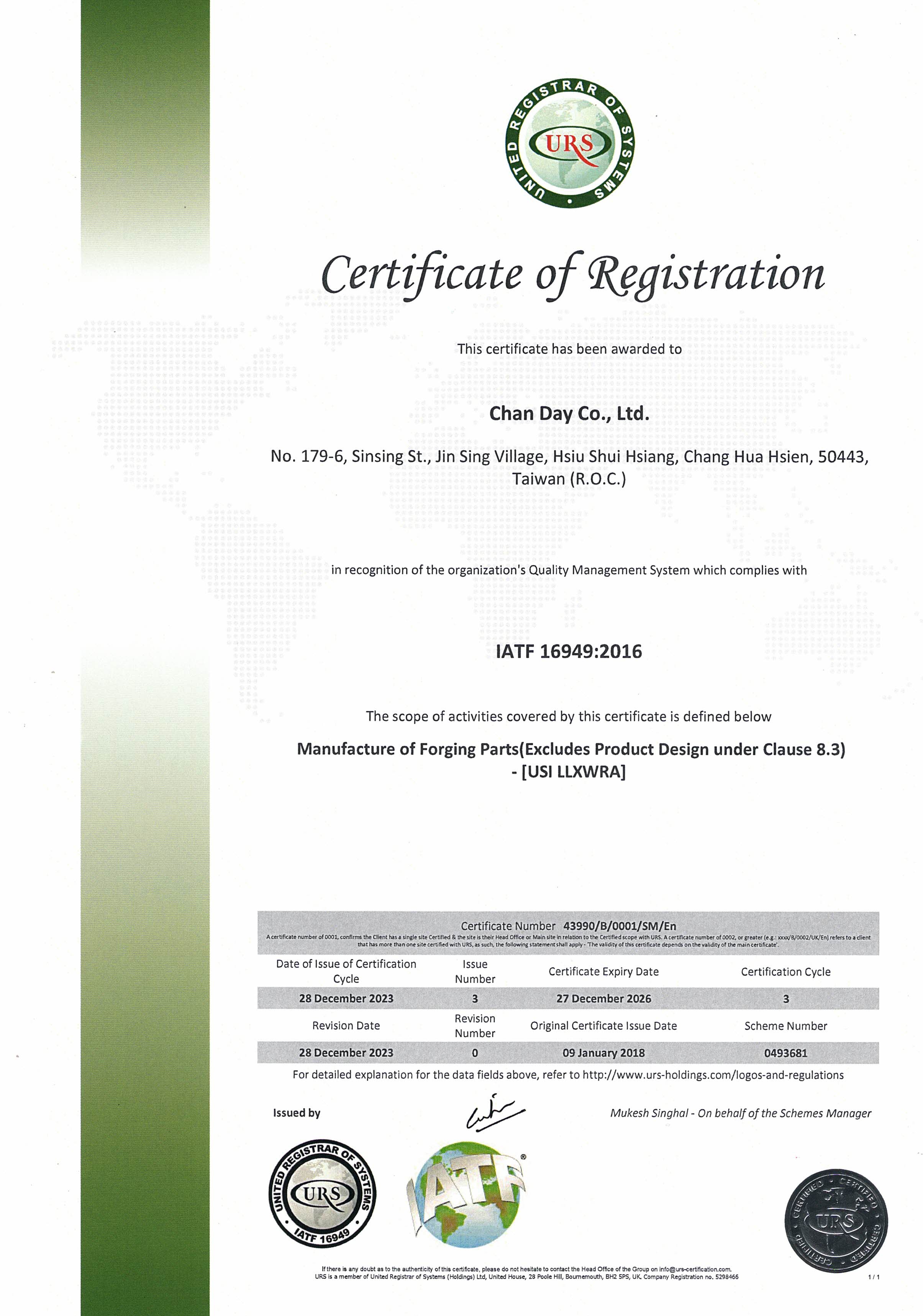 As per the requirements of IATF 16949, the certificate is also valid for three years and must be renewed upon expiration. We are pleased to announce that Chan Day has successfully passed the IATF 16949:2016 recertification audit and has officially obtained the new Quality Management System certificate. This achievement highlights our dedication to quality management and showcases our expertise in industries such as automotive and industrial manufacturing, laying a solid foundation for continuously providing our clients with exceptional products in the future.